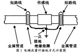 再次,需要做好在污水流量計安裝過程當中接地以及接液方面的工作。在應用污水流量計對管道內部流體流動速度進行測量的過程當中,傳感器輸出信號與電極間所對應的電壓差水平處于均等狀態。因此,為了確保流量計的平穩、可靠運行,就需要設置一個零電位的基準點作為參照。故而,在此過程當中,接液處理的核心在于:將管道內部導電液體接地設置為零電位的基準點參照;而同時接地處理的核心則在于:避免污水流量計在測量流體流速過程當中受干擾影響,并對污水流量計進行合理的安全保護。與此同時,接地處理還能夠使靜電感應以及電磁感應所可能誘發的噪聲電壓得到有效的抑制,剔除對測量數據的干擾。通過對接地電阻水平的控制,使回路雜散電流壓降水平明顯降低,依賴于降低共模干擾電壓的方式,達到鞏固污水流量計測量準確性的目的。具體的接地方式如圖所示