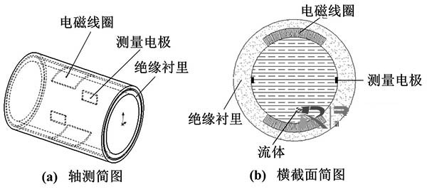 電容式冷卻塔冷卻水流量計從根本上解決了電極表面附著、腐蝕、摩擦等問題,其電極與被測流體間有絕緣襯里隔離,或者直接采用絕緣測量管。電極置于測量管外面或鑲嵌于測量管內部。嵌人式冷卻塔冷卻水流量計和外貼式冷卻塔冷卻水流量計的結構如圖2所示。