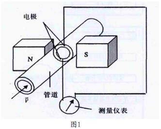 堿液計量表的設計是根據法拉*電磁感應定律,導管中導電的流體被看作導體,管道的內徑可看作道導體的長,原理圖如圖1所示,兩電極裝到與管道的中心軸和磁場方向組成的平面相垂直,拾取液體產生的感應電動勢。感應電動勢為: