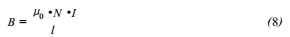 通電螺線管線圈產生的磁場為: