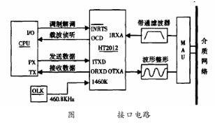 HT2012芯片用來實現(xiàn)HART協(xié)議中通訊信號的解調(diào)及調(diào)制過程。圖2為調(diào)制解調(diào)器與微處理器的連接。