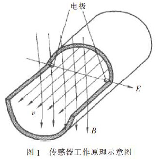 根據法拉*電磁感應定律,當一導體在磁場中運動而切割磁力線時,在導體兩端便會產生感應電動勢。設在均勻磁場中,垂直于磁場方向有一個直徑為D 的管道。管道由不導磁材料制成,內表面加絕緣襯里。當導電的液體在管道中流動時,導電液體就切割磁力線,因而在磁場及流動方向垂直的方向將產生感應電動勢。如果在管道截面垂直于磁場的直徑兩端安裝一對電極, 只要管道內流速υ 為軸對稱分布,兩極之間就會產生感應電動勢,此感應電動勢與流速具有線性關系。其表達式為: