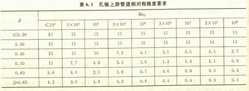 從該表可見,在雷諾數(shù)ReD不變時(shí),直徑比β越大,粗糙度要求越高.在相同的β條件下,ReD越大,粗糙度要求越高。
