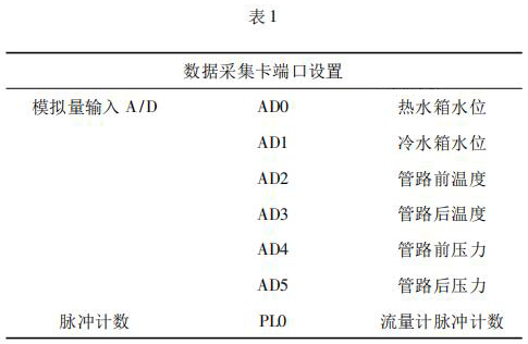 數(shù)據(jù)采集系統(tǒng)由工控機(jī)、煤油流量計(jì)以及數(shù)據(jù)采集卡組成。 4000 次冷熱沖擊試驗(yàn)要求在在*大流量 qs 條件下運(yùn)行,對(duì)流量數(shù)據(jù)的采集用到煤油流量計(jì)及數(shù)據(jù)采集卡。煤油流量計(jì)采集管路流量,數(shù)據(jù)采集卡將煤油流量計(jì)采集到的數(shù)據(jù)反饋給工控機(jī)系統(tǒng)。過程中,試驗(yàn)管路水溫以及水箱水位的采集控制也是通過數(shù)據(jù)采集卡反饋給系統(tǒng)控制。試驗(yàn)過程用到的數(shù)據(jù)采集卡采用研華生產(chǎn)的PCI - 1711。PCI - 1711 是一款多功能 PCI 總線數(shù)據(jù)采集卡,具有 16 路單端模擬量輸入功能、2 路 12位模擬量輸出功能、16 路數(shù)字輸入和 16 路數(shù)字輸出功能、計(jì)數(shù)器功能等。為保證冷熱沖擊試驗(yàn)結(jié)果的準(zhǔn)確性,嚴(yán)要求嚴(yán)格控制管路流量以及管路壓力。因此,管路設(shè)置前后管路溫度、冷熱水箱水位以及管路壓力的采集,管路流量根據(jù)煤油流量計(jì)脈沖計(jì)數(shù)進(jìn)行采集,其數(shù)據(jù)采集卡端口設(shè)置如表 1 所示。