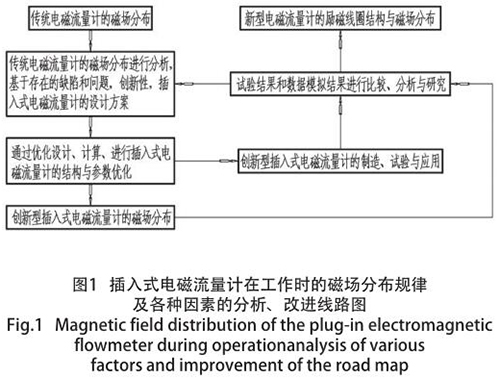 煤層注水流量計因其特殊的結(jié)構(gòu)形式,致使其抗干擾能力較弱、準確度偏低以及瞬時流量波動過大等不良現(xiàn)象,但便于安裝、造價低廉、普遍應(yīng)用于大管道等特點而存在。為了發(fā)揮其優(yōu)勢,消除其不利因素,對其內(nèi)部結(jié)構(gòu)及其相關(guān)技術(shù)參數(shù)進行優(yōu)化設(shè)計,從而使其準確度能夠達到 ±1% FS,使抗干擾能力得到極大地增強。本文主要通過優(yōu)化設(shè)計、選擇材料和試驗,使煤層注水流量計的穩(wěn)定性和準確度大幅度提高,并提出解決措施,對實際應(yīng)用具有參考價值。分析與研究程序圖如圖 1 所示。