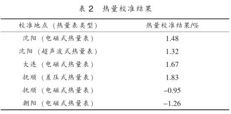經過一個采暖期的現場校準, 對我省沈陽、 大連、撫順、 朝陽的不同類型的熱量儀表的熱量校準結果進行了匯總, 如表 2 所示。