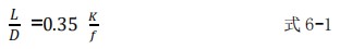 ⑤與流量計相連接的前后管道的內(nèi)徑應(yīng)與流量計口徑一致。管道和流量計連接處不許有凸出物伸入管道內(nèi),以免改變通道截面和流量計進(jìn)口流場分布,并要求管道中心河流量計中心一致。流量計上游直管段長度 L 與管道內(nèi)徑 D 的比值應(yīng)滿足式 6-1 的要求: