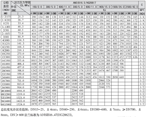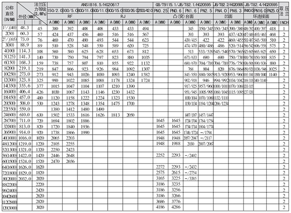 3.DN>600法蘭標(biāo)準(zhǔn)為ANSIB16.47(HG20623)
