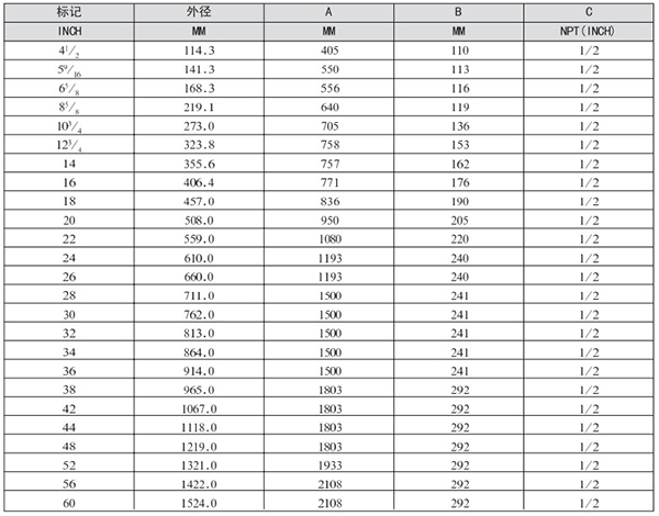 長輸管道尺寸表