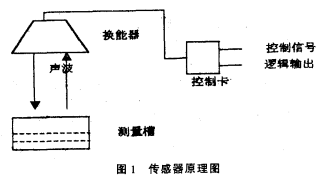 常見的液位傳感器有磁浮筒式、壓力式等,磁浮筒式傳感器要安裝在被測介質中,長時間使用易被腐蝕,而壓力傳感器輸出線性較差且成本較高。超聲波傳感器的特點是使用時與液面脫離接觸,無腐蝕問題,且價格低廉。超聲波傳感器由控制卡及換能器構成,如圖I。