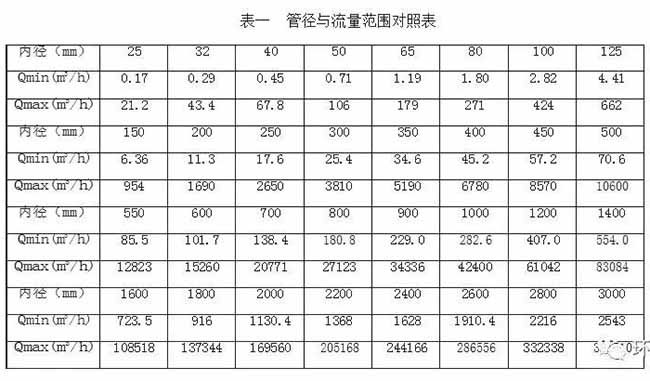 (二)確認管徑與流量(流速范圍0.1m/s~15m/s)