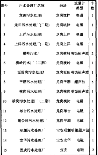 表1深圳市污水處理廠排污流量計統計