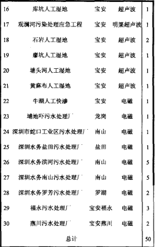 截止目前,深圳市內外所有污水處理廠(包括人工濕地、快滲)共計30余座,重點監控的排污流量計50余臺。統計數據如下表(見表1)